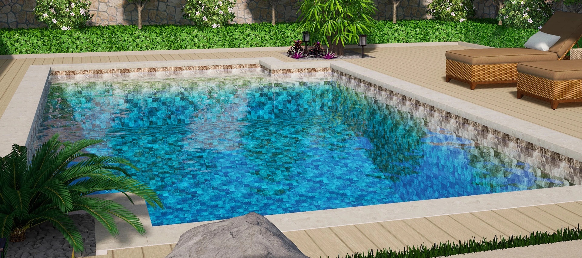 A realistic look and feel. Poolside by CGT’s aquasense adds realistic embossed texture to Poolside’s Residential Membrane engineered with added chemical resistance and industry leading UV protection. See more about Aquasense feature.