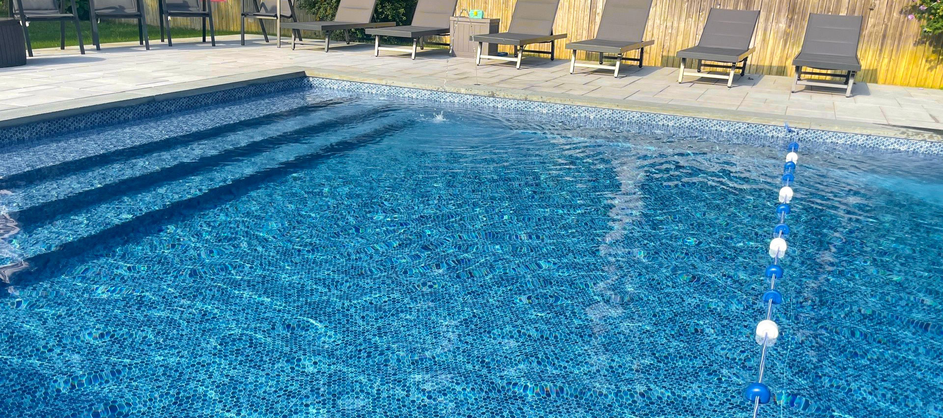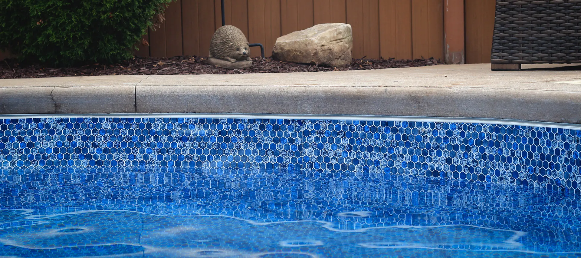Dramatic and fiery. Aquashimmer finish brings unmatched gemstone sparkle to Poolside’s premium pool liner material engineered with added chemical resistance and industry leading UV protection. See more about Aquashimmer feature.