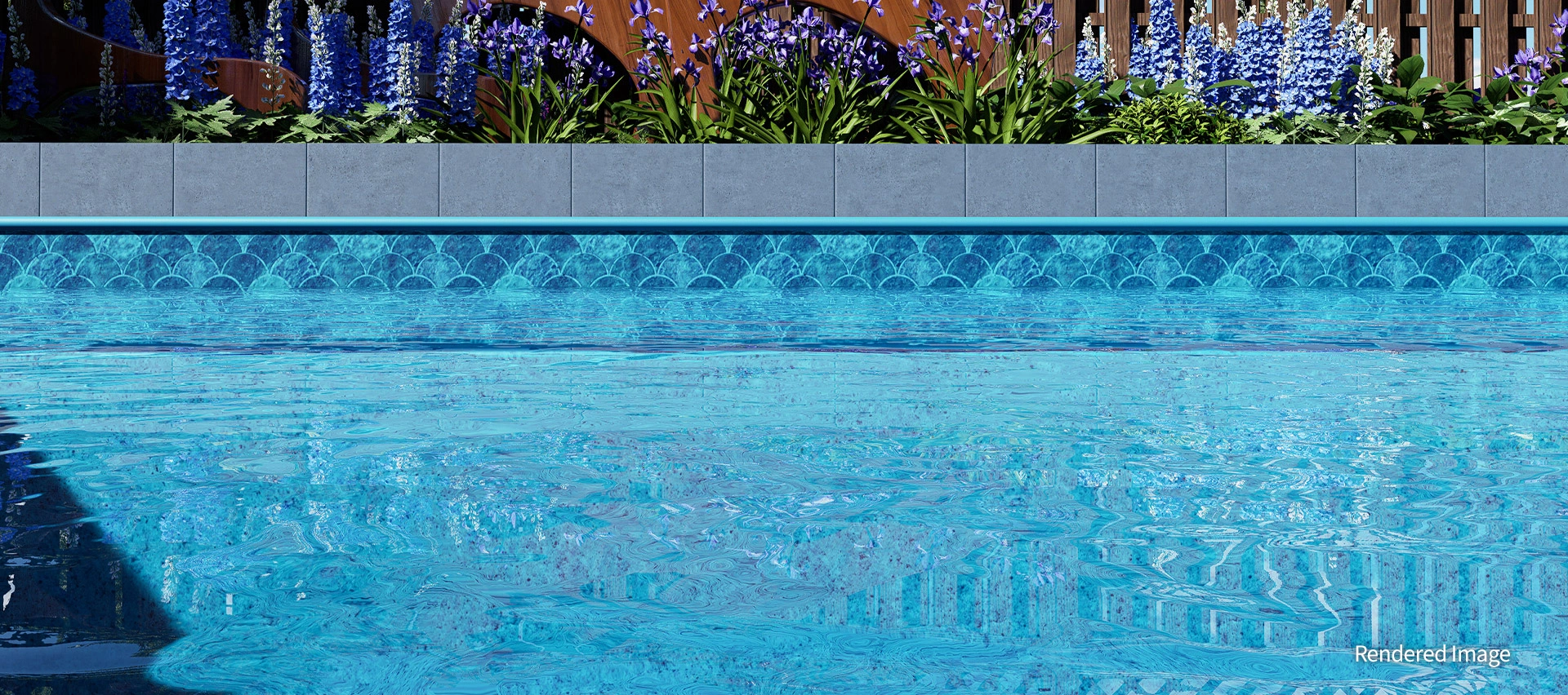 Featuring unique mermaid-style tiles in a serene colour palette, Full Sails is a harmonious fusion of tradition and innovation. Designed to pair seamlessly with the Quartz Garden floor, its soft teal tones mirror the sky and surrounding nature, amplifying the water’s brilliance and cultivating a radiant, peaceful ambience.