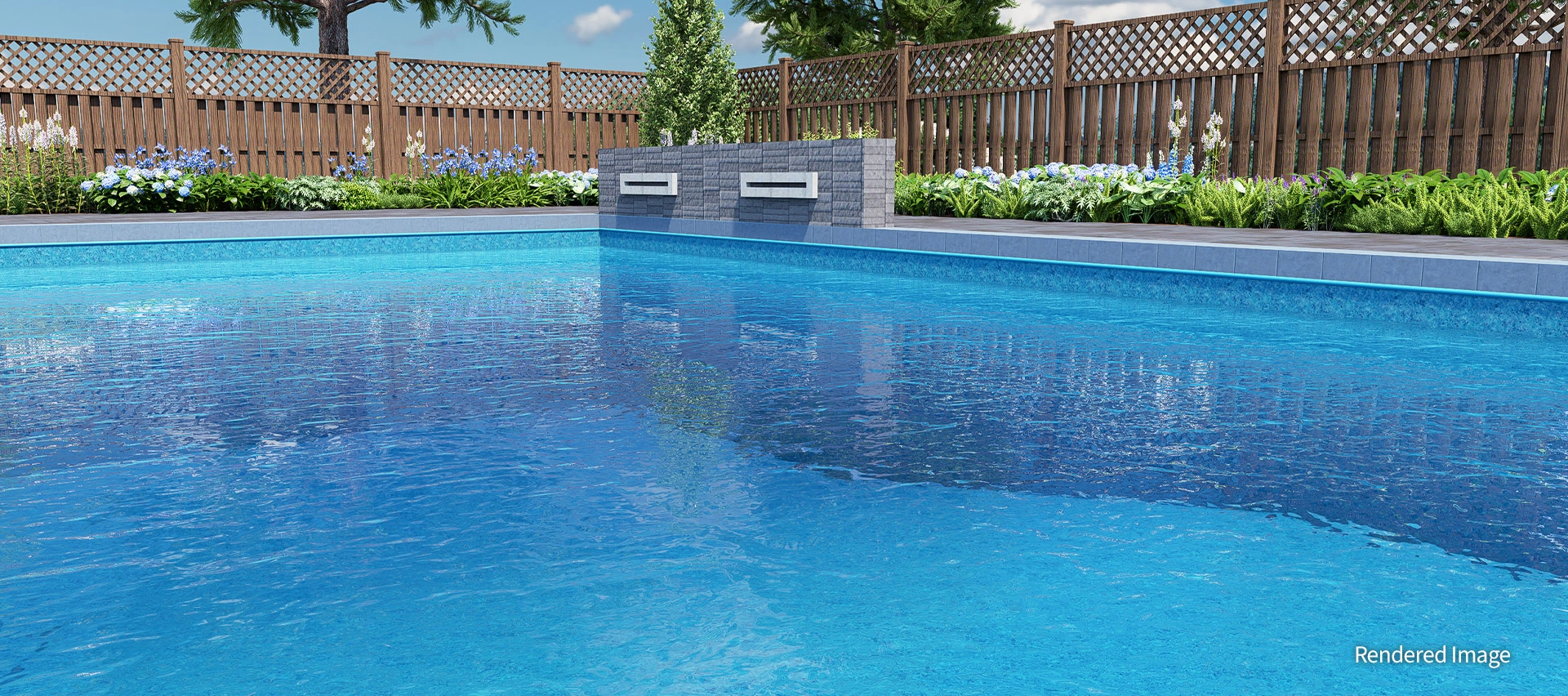 A harmonious blend of light, airy colours and natural stone textures brings cheerful energy to any backyard. The Quartz Garden’s soft teal tones reflect the surrounding sky and landscape, amplifying the water’s brightness and creating a peaceful, radiant ambience.