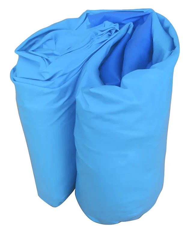 Vinyl liners should be stored in a temperature-controlled environment and should not be stacked in a way that creates pressure on folded areas.